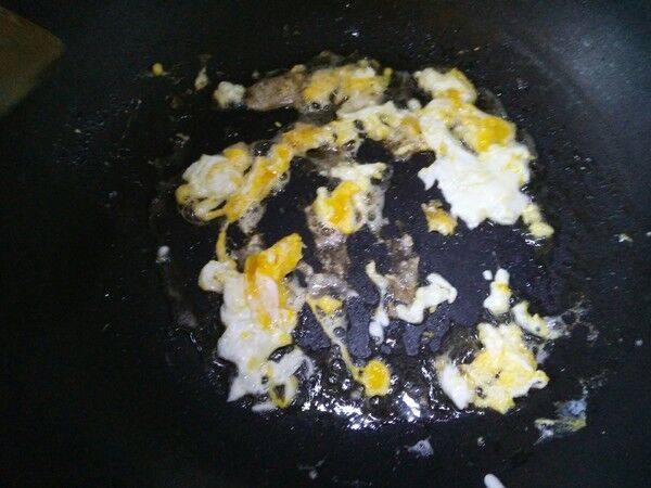6、加配菜炒匀,加酱油、番茄酱、花椒油多放一点,继续炒匀。