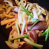 最佳答案:准备材料:酱肉一块、春笋一斤、蒜瓣1个、生姜一块、葱段适量、干辣椒若干、盐、鸡精、花椒。酱肉放锅里加水煮熟,将春笋切斜刀。春笋焯水,煮5分钟之后舀出沥水。酱肉煮到用筷子能插透后取出,晾到不烫手,切成薄片。热锅少油,下酱肉片翻炒至肥肉部分变透明,整个肉片略微卷曲。