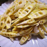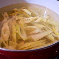 4、切好的笋焯水,煮5分钟之后舀出沥水。