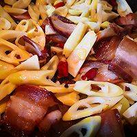 6、热锅少油,下酱肉片翻炒至肥肉的部分变透明,整个肉片略微卷曲。