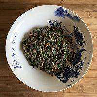 3、挤干荠菜里的水分,将荠菜切成末。