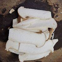 2、小杏鲍菇洗净,竖着切成片,焯水10分钟左右。