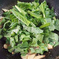 11、放入春菜叶,翻炒均匀,放入适量的盐,翻炒入味。
