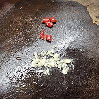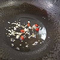 7、锅中放入适量油,放入蒜末和辣椒,小火爆香。