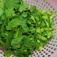 4、春菜劈开,洗净,切成小段,茎叶分开。