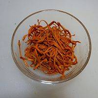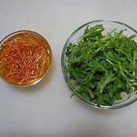 2、茼蒿洗净切成小段,虫草花用温水浸泡10分钟。