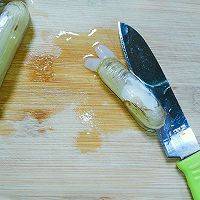 3、吐完泥沙用水反复将壳两面泥土搓洗干净,再用小刀将蛏子中间的筋切断。