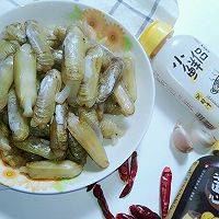 1、准备材料:蛏子600克、干辣椒10个、料酒1勺、小鲜侣两滴、白糖35克、姜片10克、蒜3瓣、酱油适量。