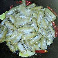 4、起锅倒入底油,姜蒜爆香,再放入干辣椒煸炒,接着倒入蛏子大火翻炒。