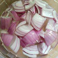 1、准备材料:猪腰2个、洋葱1个、青椒2个、白胡椒少许、盐少许、糖少许、姜少许、料酒2勺。