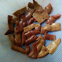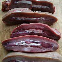 2、猪腰对半切开,剔除猪腰里面白色及深红色杂质。