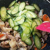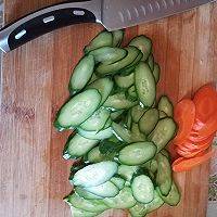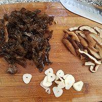 1、准备材料:熟羊脸肉500克、胡萝卜半根、黄瓜1根、木耳适量、香菇2朵、盐适量、蒜瓣3瓣、黑胡椒碎适量、白胡椒粉适量、葱花适量、植物油适量、蚝油一勺、香菜一根。