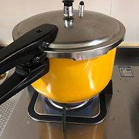 3、将炒干的鸭肉放入高压锅,加姜片,加水,没过鸭肉。