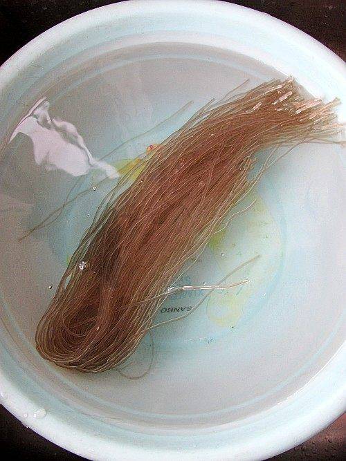 2、粉丝温水浸泡。