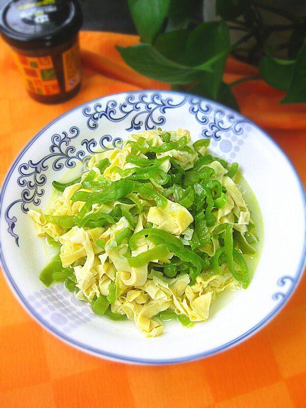 最佳答案:豆腐皮切成丝,尖椒切成丝,锅里放入水,放入豆腐皮烧开。豆腐皮捞出用凉水过凉,沥干水。锅烧热,放入油烧热,放入蒜爆香,放入豆腐皮、尖椒翻炒均匀。再放入精盐、味精翻炒均匀,放入少许水。炖至豆腐皮有蓬松感即可。