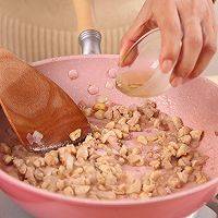6、然后倒入鸡腿丁,炒至颜色略微发白,加入料酒翻炒。