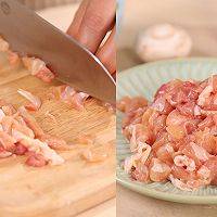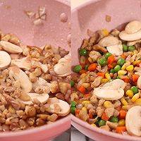 7、接着加入口菇翻炒片刻,再加入焯水后的各种丁类翻炒片刻。