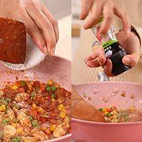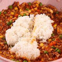 10、用锅铲压散,翻炒均匀,直至把汁收干。