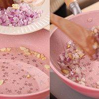 5、热锅下油,把蒜瓣炒香,再加入洋葱炒出香味。