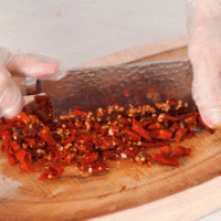 6、捞起沥干,用搅拌机打碎,制作成糍粑辣椒。