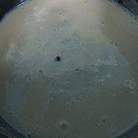 2、将牛奶和白糖倒入奶锅中,大火烧开。