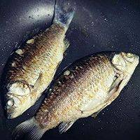 3、锅中放油,鱼用小火煎2~3分钟至两面焦香。