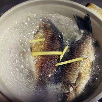 5、加入姜丝,不盖锅盖,大火煮20分钟,再中火熬到汤色足够白。