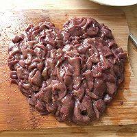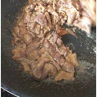 8、大火把锅烧热,倒油,油冒烟后倒入腌制好的猪肝,快速滑炒一分钟。