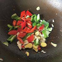 10、将除洋葱之外的配菜下锅,大火翻炒一分钟。