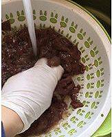 4、把切好的猪肝用带沥干篮的洗菜盆捞洗,水浑后就倒掉,重复洗到水不会再浑为止。