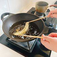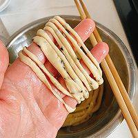 10、再用筷子支起来,拉长放入油锅。