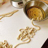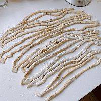 9、将面一圈圈绕在手上。