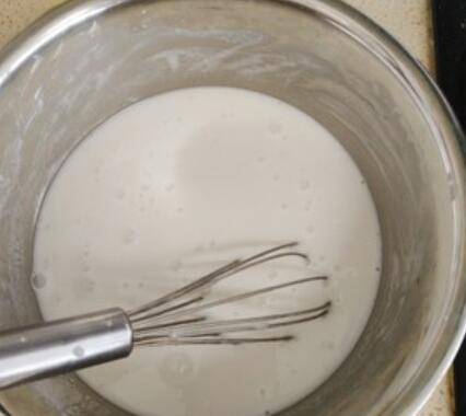1、200g粉和600ml水混合搅匀成粉浆,加入2g盐。