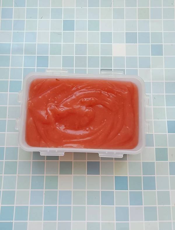 8、倒入干净的容器,双手震实,放入冰箱冷藏一个小时以上。