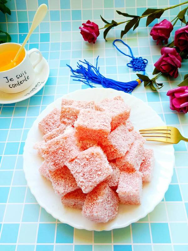 1、准备材料:西红柿500克、水250克、豌豆粉100克、椰蓉适量、糖70克、清水500克。