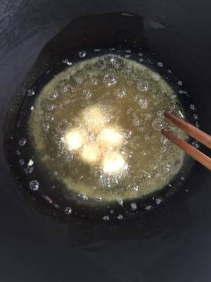 7、锅中放油,待油温稍热,就下锅炸奶豆腐,炸至金黄色捞出。