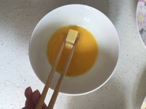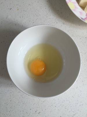 5、奶豆腐先用鸡蛋挂糊。