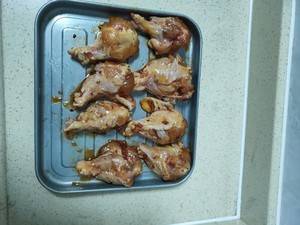 5、腌好的小鸡腿摆入烤盘,在鸡腿表面刷点油。