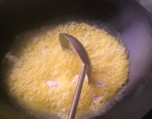 3、起锅热油后,加入面粉,小火慢慢的搅拌。