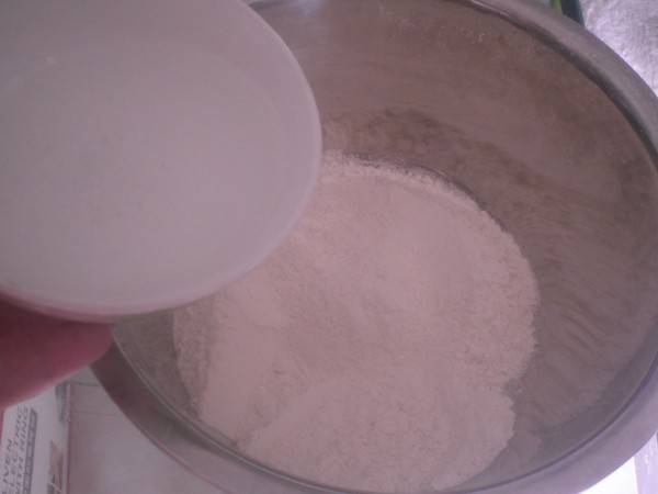 2、酵母用温开水溶解后,静置三至五分钟,然后加到面粉中,一点点的加水,将面和好,放到温暖处醒发二倍大。