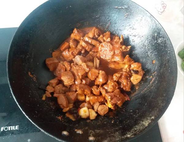 最佳答案:准备材料:猪肉400克、八角两个、桂皮一块、花椒一小把、生姜一小块、蒜六瓣、干辣椒七个、植物油适量、猪油一勺、盐适量、料酒一勺、老抽一勺、香菜适量、白糖一小撮。猪肉洗净切小方块,沥干水分待用,生姜切片,蒜去皮。锅内倒入适量油,开大火烧热后,转小火,放入花椒、八角、桂皮、生姜片炸香。