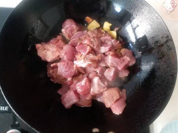 2、猪肉洗净切小方块,沥干水分待用,生姜切片,蒜去皮。