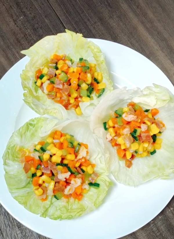 最佳答案:准备材料:虾仁50克、培根50克、生菜球一个、胡萝卜50克、黄瓜50克、玉米粒50克、盐少许、鸡精少许、橄榄油少许、水淀粉适量。虾仁、培根、胡萝卜、黄瓜、玉米切粒。生菜修成贝壳状,胡萝卜、玉米焯水。锅中放少许油,先将培根煎出油。再倒入胡萝卜、玉米粒、虾仁粒、黄瓜粒。