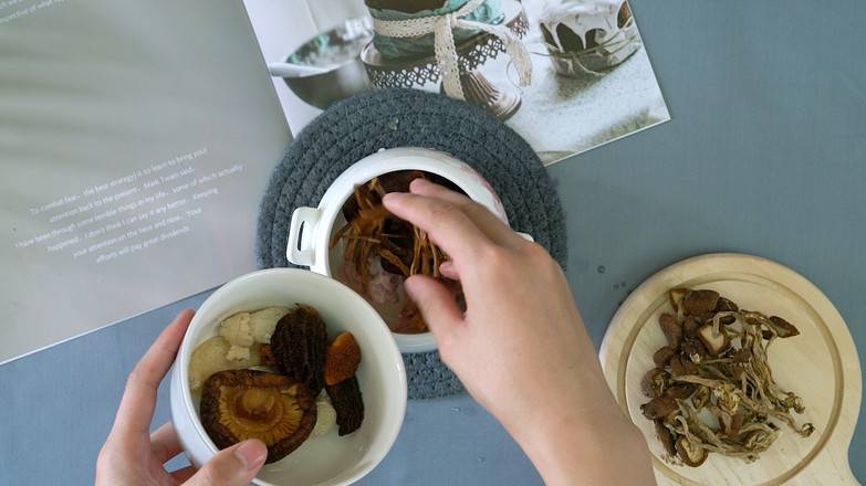 最佳答案:准备材料:排骨适量、茶树菇适量、羊肚菌适量、竹笙适量、香菇适量、姬松茸适量、盐适量。野生菌菇洗干净,排骨用热水除血水洗净。所有食材放入炖盅中,炖煮一个小时左右即可。