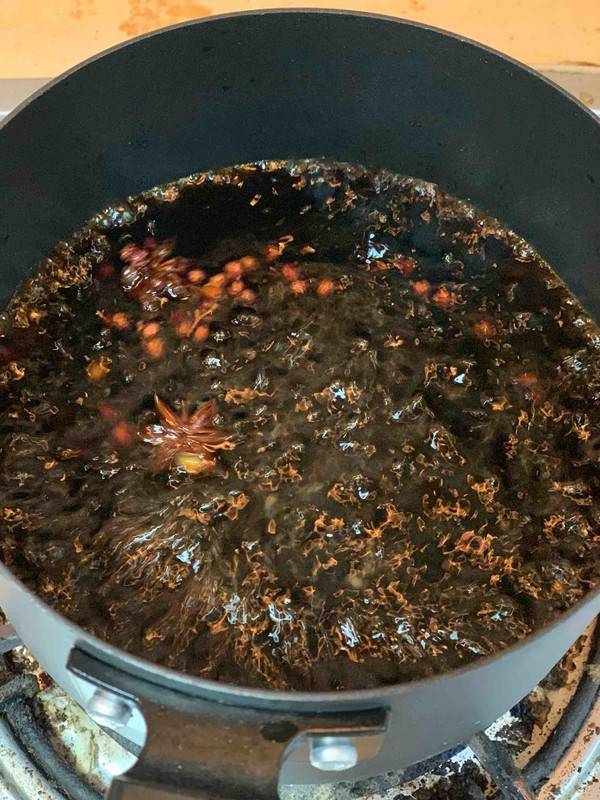 6、装入干净的玻璃瓶,倒入煮好的酱汁,密封保存15天以上,等蒜的辣味去掉即可。