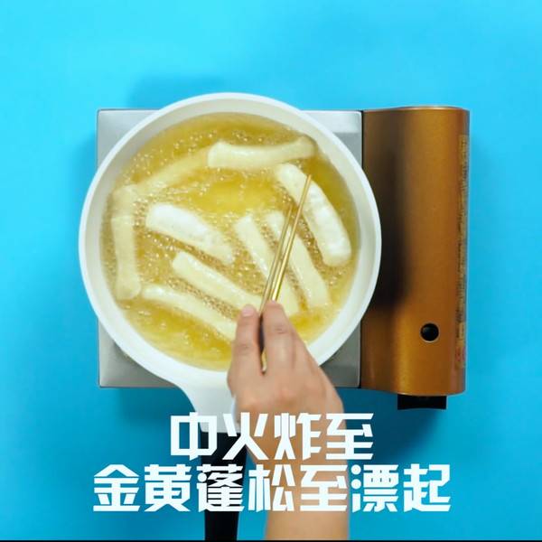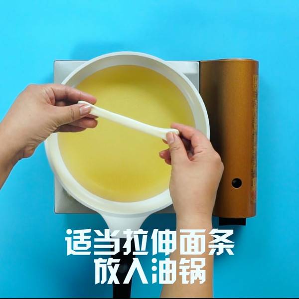 最佳答案:用料:面粉50克、高筋面粉50克、鸡蛋1个、小苏打3克、盐2克、食用油500毫升。将面粉、高筋面粉、小苏打、盐、鸡蛋搅拌均匀揉成面团,盖上保鲜膜发酵30分钟。将面条等分切条,锅中加油,油热后适当拉伸面条放入油锅。中火炸至金黄蓬松至漂起即可。