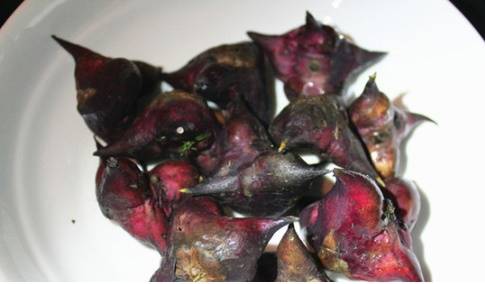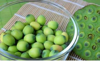 5、将新鲜莲子、红菱、莲藕、胡萝卜逐个在水中烫熟。