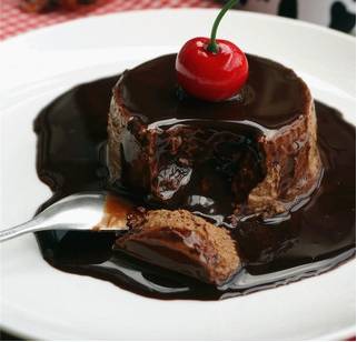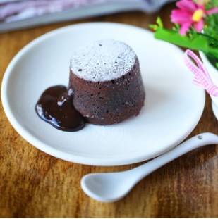 2、熔岩巧克力蛋糕:鸡蛋加入细砂糖,用打蛋器打发至稍有浓稠感;倒入黄油和巧克力酱的混合物里拌匀;加入朗姆酒拌匀;分次加入过筛后的低筋面粉拌均匀;拌好的巧克力蛋糕面糊放入冰箱冷藏半小时,再倒入纸杯7分满;放入预热好上下火210度的烤箱,烤8~10分钟;待不烫手时撕去纸模,底部朝上,撒上糖粉,成热食用即可。