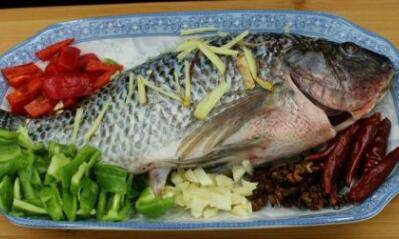 材料:鳊鱼1条、青椒、红椒、葱姜蒜、老抽适量、花椒、八角、干辣椒、料酒、醋适量、冰糖适量。
