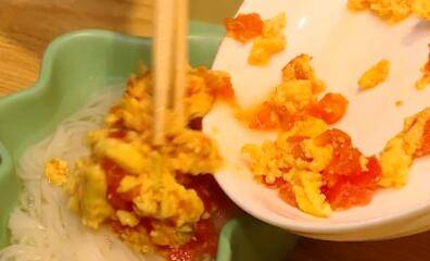 5、将面连同少许汤汁一起盛出,加入番茄鸡蛋即可。
